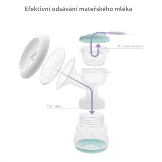 Odsávačka má elektrický pohon, není nutné manuální pumpování. Potěší vás i její tichý chod.