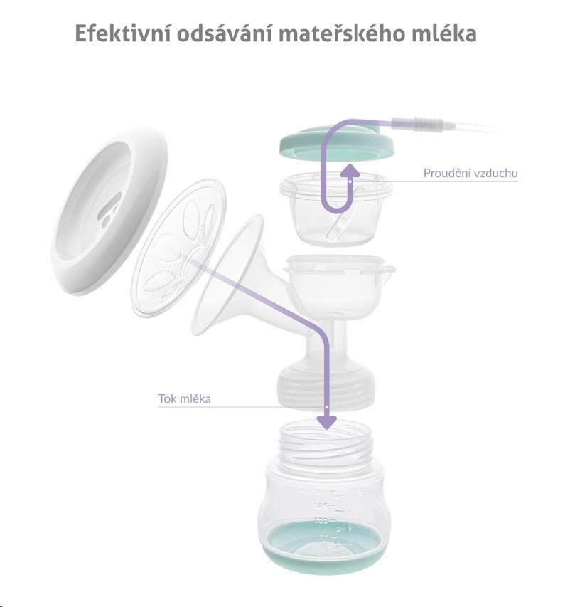 Odsávačka má elektrický pohon, není nutné manuální pumpování. Potěší vás i její tichý chod.