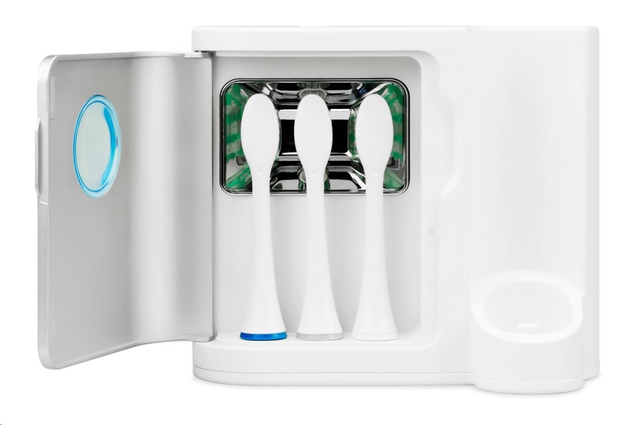 UV světlo během chvíle dezinfikuje hlavu kartáčku a zničí až 99,9 % bakterií – čistá ústa začínají čistým kartáčkem.