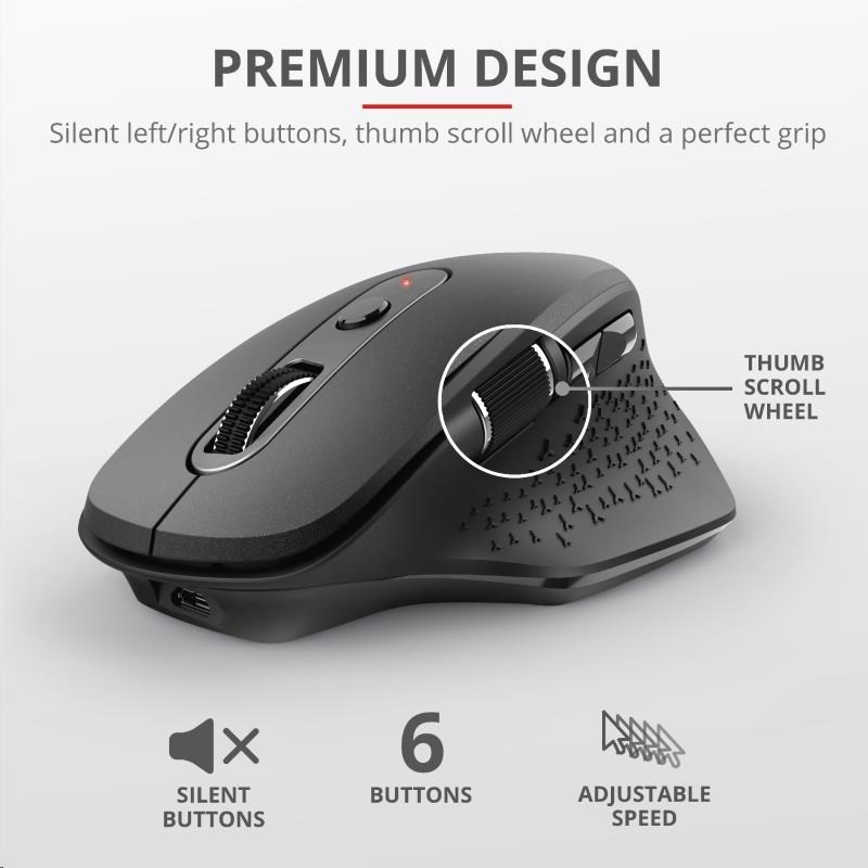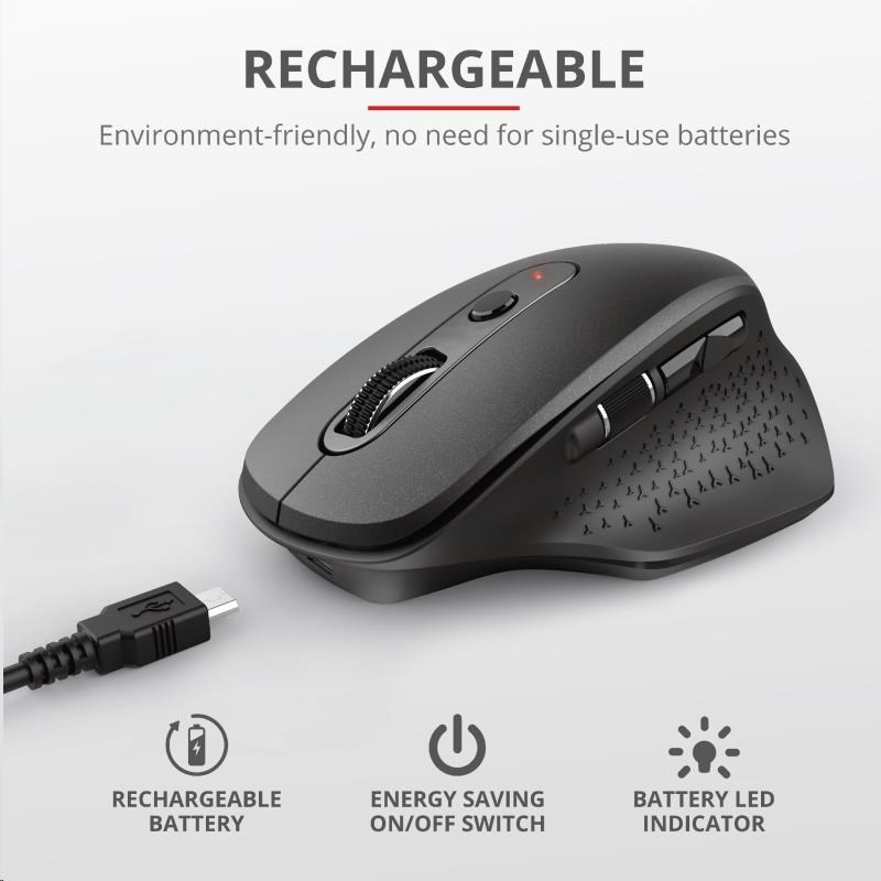TRUST bezdrátová Myš Ozaa Rechargeable Wireless Mouse - black