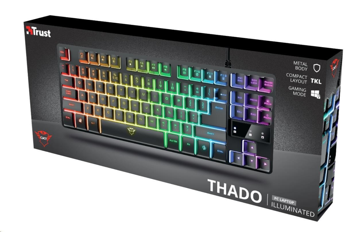 TRUST herní klávesnice GXT833 THADO, membránová, USB, US