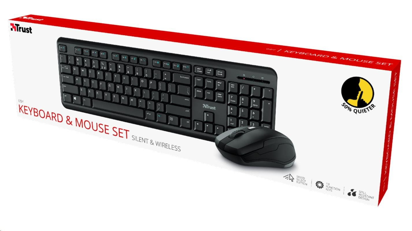 TRUST set klávesnice + myš ODY, bezdrátová, USB, DE