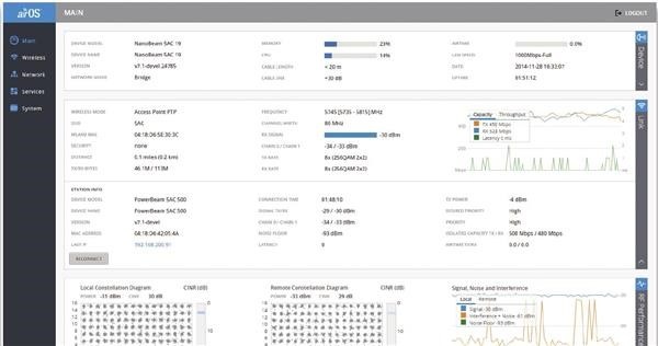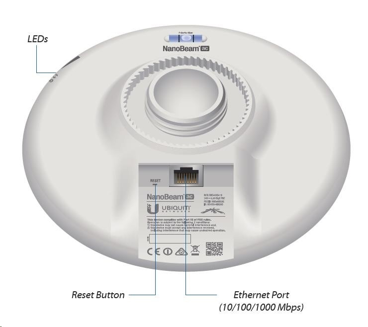 Uvnitř NanoBeamu se nachází výkonný MIPS procesor Atheros 74KC s frekvencí 720MHz, kterému sekunduje 128MB operační paměti typu DDR2 a 8MB Flash paměť. Síťový port podporuje 10/100/1000 Ethernet a lze po něm jednotku napájet pasivním Gigabit PoE 24V/0,5A adaptérem, které je součástí balení (aktivní PoE dle 802.3af není podporováno).