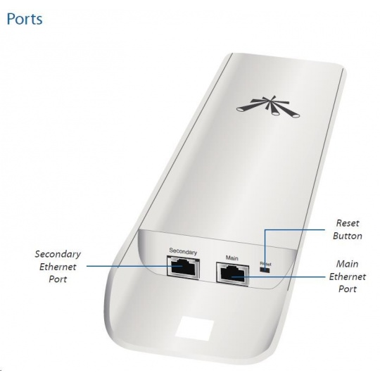 Nanostation M5 disponuje proti verzi "locoM5" dvěma ethernet.porty a výkonnější anténou se ziskem 16dBi. Můžeme tak k jednotce například připojit IP kameru. Díky možnosti distribuce PoE napájení i na tento port není nutné instalovat dva samostatné PoE adaptéry. PoE na druhém portu lze softwarově vypínat/zapínat, lze tak případně vzdáleně restartovat připojené zařízení. PoE adaptér disponuje "RESET" tlačítkem pro uvedení jednotky do továrního nastavení případně TFTP režimu pro obnovu poškozeného firmware.