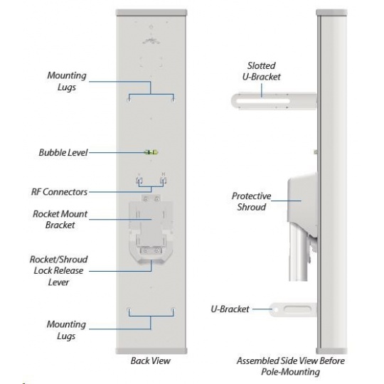 Dvoupolarizační sektorová 16dBi anténa vhodná pro jednotku Rocket M2 (2x2 MIMO). Vyzařovací úhel 90°. Využívá horizontální i vertikální polarizaci, čímž nahrazuje dvě samostatné antény a lze tak jednoduše vytvořit přístupový bod s vysokou propustností.