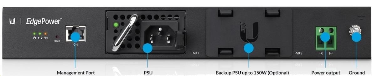 Edgepower je výkonné rackmount napájecí řešení s webovým managementem vhodné pro napájení EdgePoint routerů a switchů. EdgePower obsahuje 2 šachty pro modulární napájecí zdroje, které lze pomocí managementu sloučit (max. výkon 300W) nebo automaticky zálohovat (max. výkon 150W). Napájecí zdroje jsou typu hot-swap a je možné je vyměnit za chodu.