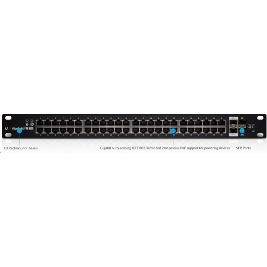 UBNT EdgeSwitch ES-48-500W [70Gbps, 500W, aktivní (802.3af/at) i pasivní (24V) PoE, 2xSFP, 2xSFP+, L2/L3]
