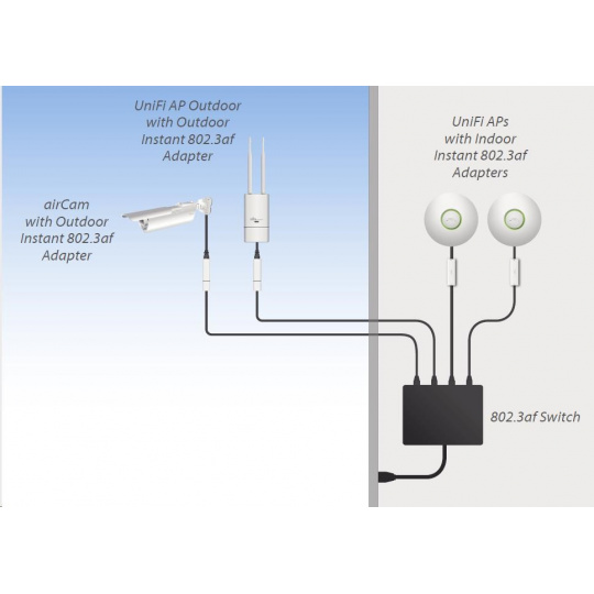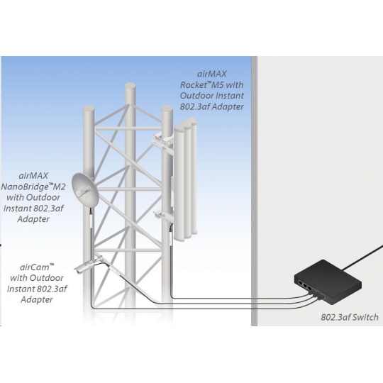 Pomoci tohoto konvertoru je možné napájet jednotky UBNT switchem s aktivním PoE dle 802.3af (48V). Konvertor komunikuje se switchem dle 802.3af a do výstupu propouští již klasické pasivní PoE, v tomto případě 18V/0,7A. Lze použít se všemi jednotky od Ubiquity (je kompatibilní i s routerboardy od Mikrotiku).