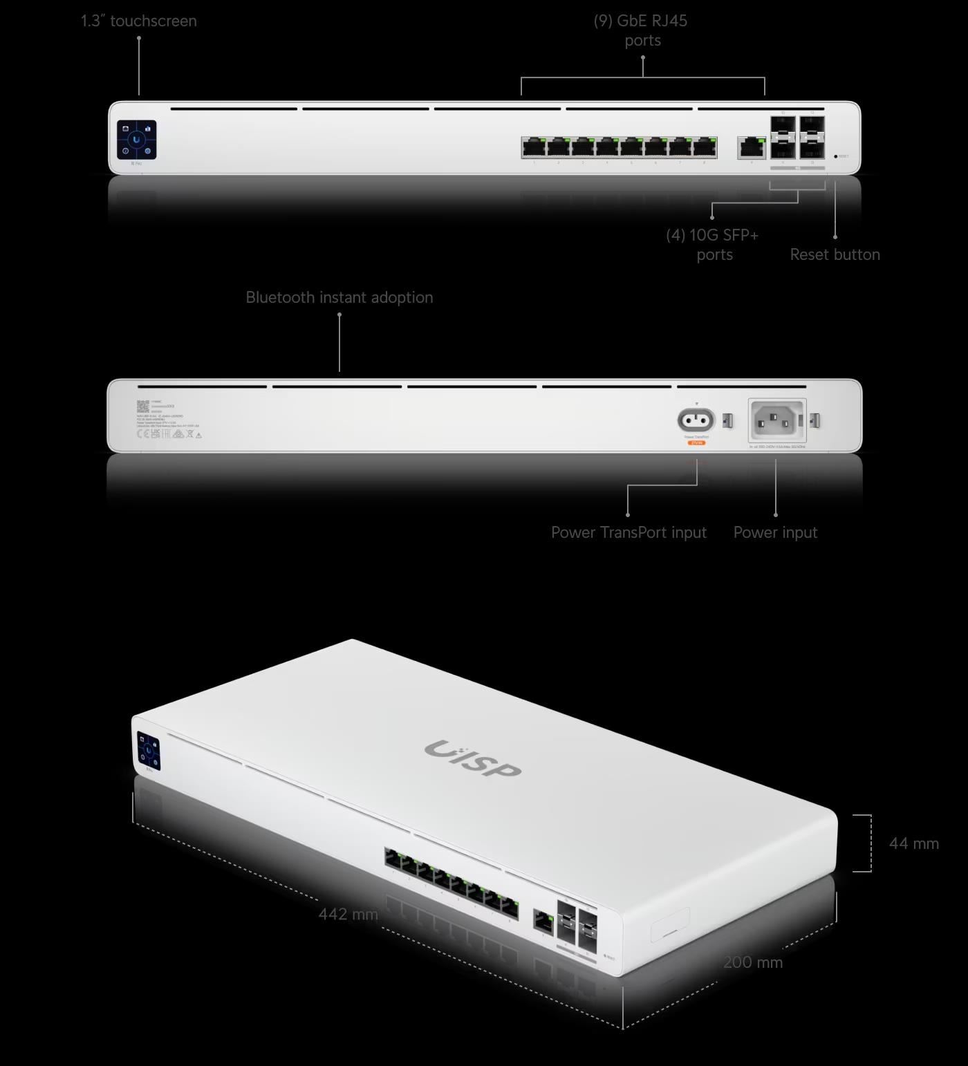 Popis produktu UISP-R-Pro je ideální router díky svému výkonu pro nasazení do firemní sféry. Router disponuje 8x Gigabit LAN, 1x Gigabit WAN, 4x SFP+ (podpora 1G i 10G) porty pro další rozšíření pomocí optického vlákna a 1,3" LCD dotykovým displejem pro jednoduché zobrazení o stavu a zatížení routeru. UISP Router Pro je funkcemi i porty nabitý router s důrazem na kvalitu, spolehlivost a jednoduchost instalace. Router lze napájet primárně přes 230V AC ze sítě ale i přes 27V DC Power TransPort konektor pro případnou redundanci. UISP Router Pro je spravován POUZE pomocí aplikace UISP, centralizované platformy, kde můžete monitorovat a spravovat všechna vaše zařízení UISP. Klíčové vlastnosti • (8) Gigabit LAN + (1) Gigabit WAN • (4) 10G SFP+ port • Montáž do 19" racku • Až 9500 Mbps propustnost v NATu / 2250 Mbps propustnost s QoS • Podpora Firewallu, OSPF routingu a shapingu • Napájení přes 230V AC ale i přes Power TransPort pro DC redundanci • Snadné nastavení pomocí technologie Bluetooth prostřednictvím mobilní aplikace UISP 1.4.5 a vyšší Obsah balení • Zařízení • Napájecí kabel • Rackmount kit Technické parametry Konektory a rozhraní Možnost více WAN:Ano Rychlost LAN:(8) 10/100/1000Mbps Gigabit LAN:Ano Optické rozhraní:(4) 1G/10Gbps Ostatní:Dotykový displej, Bluetooth Napájení Typ napájení:DC konektor, Ze sítě (230V) Redundantní napájení:Ano Max. spotřeba energie [W]:50 Napájení přes konektor/svorkovnici:27V DC, 230V AC Fyzické charakteristiky Provedení:Rackmount Šasi:Kovové Tlačítka:Reset Provozní teplota [°C]:-10 až 50 Šířka [mm]:442 Výška [mm]:44 Hloubka [mm]:200 Hardware CPU:ARM Cortex-A57 Frekvence CPU [MHz]:1700 Počet CPU jader:4 RAM [MB]:4096 Obecné Propustnost NAT [Mb/s]:9500 Software Management:UISP aplikace.