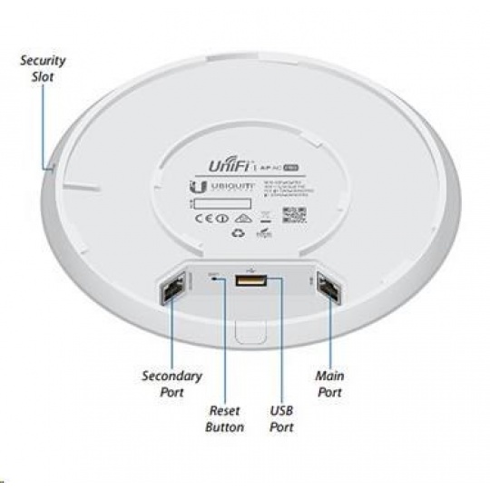UAP-AC-PRO je určeno do vnitřních i venkovních prostor, nabízí rychlosti 450Mbps v 2.4GHz (3x3MIMO) + 1300Mbps v 5GHz(3x3MIMO). Napájení je realizováno aktivním PoE dle 802.3af/at. K dispozici jsou dva gigabitové ethernet porty.