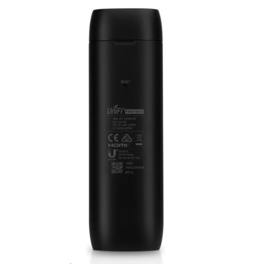 UniFi Protect ViewPort je zařízení umožňující sledování živého obrazu až 16ti kamer z UniFi Video Protect přes HDMI na vašem monitoru a to až ve 4k rozlišení. Zařízení má 2 Gigabitové LAN porty, z nichž jeden umožňuje napájení přes 802.3af PoE, HDMI port s podporou 4k při 30fps a resetovací tlačítko.