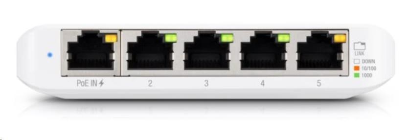 USW-Flex-Mini je maličký 5-portový Gigabitový switch se správou přes UniFi Controller od Ubiquiti Networks v desktop provedení s prvním portem podporující PoE In.