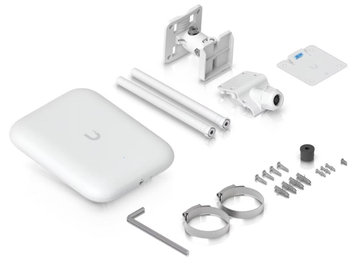Popis produktu Ubiquiti U7 Pro Outdoor je nová venkovní tripple-band jednotka s podporou Wi-Fi 7. Pracuje v pásmu 2,4 GHz o rychlosti 688 Mb/s, v pásmu 5 GHz o rychlosti 4,3 Gb/s a v pásmu 6 GHz o rychlosti 5,7 Gb/s. Jednotka disponuje vestavěnou anténou se ziskem 8-10 dBi a vyzařovacím úhlem 90°, součástí balení jsou také dvě externí všesměrové antény, které připojíte pomocí RP-SMA konektorů na horní části. Pro připojení do sítě je k dispozici LAN port o rychlosti až 2,5 Gb/s. Access point je napájen pomocí PoE+ (adaptér není součástí balení). Access point nabízí široké možnosti montáže na stěnu, strop nebo stožár, montážní příslušenství je součástí balení, pro venkovní použití vč. voděodolné kabelové průchodky. Centrální řízení jednotek K zařízení je potřeba stáhnout z oficiálních stránek originální software nazývaný UniFi controller, díky kterému lze řídit celou síť. Nespornou výhodou UniFi controlleru je, že je zcela zdarma bez jakéhokoliv omezení! Tento centrální management umožní nahrávat mapy a nastavit základní parametry jako například SSID, guest účet, úvodní stránku, statistiky provozu i seznam a status asociovaných klientů vždy snadno a rychle. U7-Pro-Outdoor Výhody UniFi řešení Zero Handoff Roaming - bezvýpadkový přechod mezi jednotlivými AP Wireless uplink (hodí se tam, kam není možné dostat datový kabel) Až 8 SSID Detailní statistiky provozu Guest síť Voucher system Load balance - udržování rovnoměné zátěže / přepínání klientů Omezování rychlosti pro každé SSID Obsah balení Zařízení Držáky na stěnu, strop a stožár Voděodolná kabelová průchodka Vrtací šablona Stahovací páska Montážní sada.