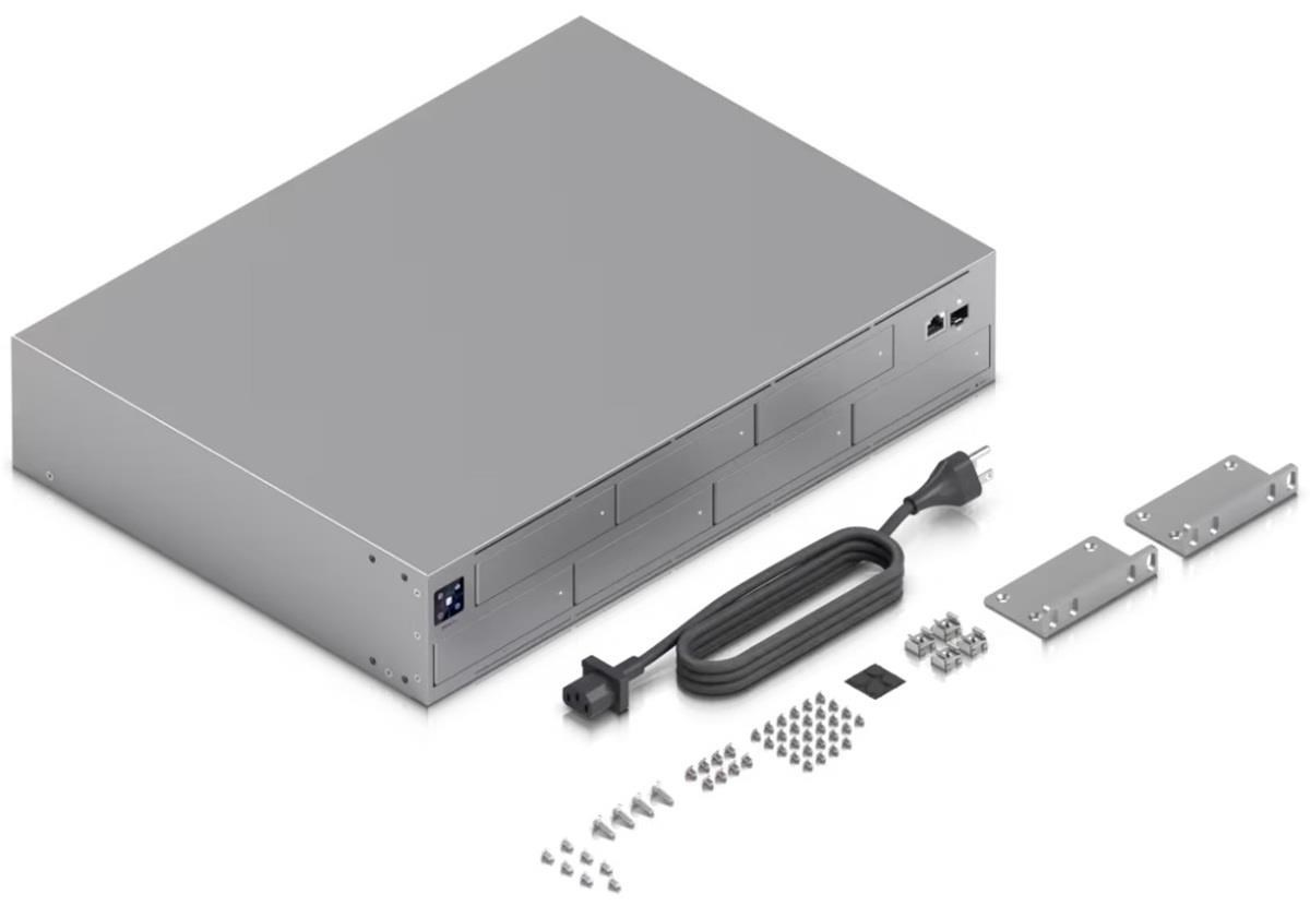 Popis produktu NAS pro montáž do 2U racku disponující 7x 2,5/3,5" pozicemi pro disk, jedním Gbe RJ-45 portem a jedním 10G SFP+ portem pro uplink. Vhodný pro ukládání velkých souborů. Poháněn je čtřjádrovým procesorem ARM Crotex-A57 pracující na frekvenci 1,7 GHz, který je doplněný o 8 GB operační paměti. • (1) 10G SFP+ uplink a (1) GbE RJ-45 port • Ochrana dat pomocí technologie úložiště RAID • Připraveno na zálohování napájení UniFi • 1,3" dotykový displej pro správu • Podpora bluetooth 4.1 • Max. příkon 135 W Obsah balení • Zařízení • Napájecí kabel • Příslušenství pro montáž do racku Technické parametry Konektory a rozhraní Počet slotů pro HDD:7 Rychlost LAN:(1) 10/100/1000Mbps Gigabit LAN:Ano Optické rozhraní:(1) 1/10Gbps Ostatní:Dotykový displej, Bluetooth Napájení Typ napájení:Ze sítě (230V), UniFi SmartPower RPS Redundantní napájení:Ano Max. spotřeba energie [W]:160 Napájení přes konektor/svorkovnici:230V AC Fyzické charakteristiky Provedení:Rackmount Materiál:Zinek, Ocel Počet "U" pozic:2 Provozní teplota [°C]:-5 až 40 Hmotnost [kg]:9,5 Šířka [mm]:442 Výška [mm]:87 Hloubka [mm]:325 Hardware Podporovaná kapacita HDD [TB]:16 CPU:ARM Cortex-A57 Software Úroveň RAID:1 - mirroring, 5 - striping, 10 - mirroring.