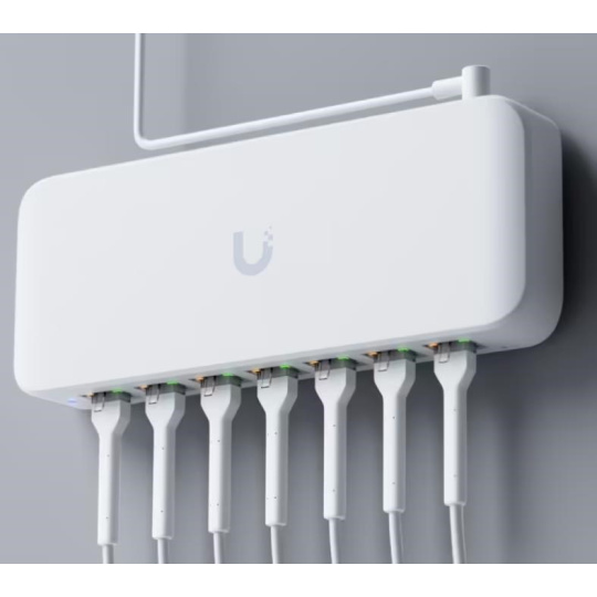 Popis produktu Kompaktní 8 portový gigabitový PoE switch. Switch disponuje 1 PoE in portem a 7 PoE out porty s podporou PoE napájení 802.3af/at s maximálním zatížením až 30W na port. Switch je spravován pomocí aplikace UniFi network umožňující centrální správu Vaší sítě včetně cloudového přístupu. Maximální PoE budget switche je závislý na způsobu napájení: • při napájení DC adaptérem 54V/3,9A (součástí balení) je PoE budget 52W • při napájení pasivním PoE adaptérem nebo 60W PoE++ adaptérem je PoE budget 45W Obsah balení • switch • napájecí adaptér 54V/3,9A • montážní set • Technické parametry • Konektory a rozhraní • Rychlost LAN:(8) 10/100/1000Mbps • Napájení • Typ napájení:DC konektor, PoE • Typy PoE:PoE-Out + PoE-In • Podporované PoE-Out standardy:802.3af, 802.3at • Počet PoE Out portů:7 • PoE budget [W]:52 • Max. spotřeba energie [W]:60 • Napájení přes konektor/svorkovnici:44 .. 57V DC • Fyzické charakteristiky • Provedení:Na zeď, Desktop • Ventilátory:Bez ventilátoru • Šasi:Plastové • Tlačítka:Reset • Provozní teplota [°C]:-15 až 45 • Šířka [mm]:203 • Výška [mm]:33 • Hloubka [mm]:76 • Obecné • Rychlost přepínání [Gbps]:8 • Software • Management:UniFi controller • Funkce:VLAN.