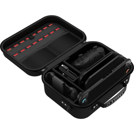 Take your Switch 2, dock and accessories everywhere whilst also keeping them safe and secure with the Venom Nintendo Switch Travel Case. Case includes inserts designed to offer the perfect snug fit for your console and its accessories whilst out and about. Features: • Universal fit for Nintendo Switch 2, Switch and OLED. • Robust outer shell to protect from bumps and scratches. • Internal foam to fit perfectly around your console, dock and accessories. • Reinforced carry handle and adjustable shoulder strap. • Mesh pocket for additional accessories..