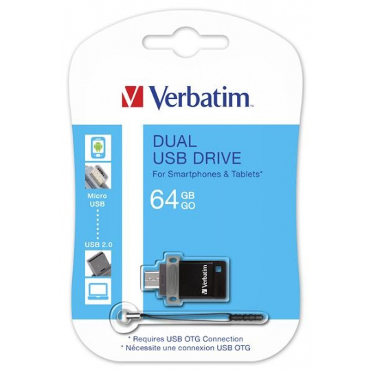 VERBATIM Dual USB Drive 64 GB - OTG/USB 2.0 for Smarphones & Tablets