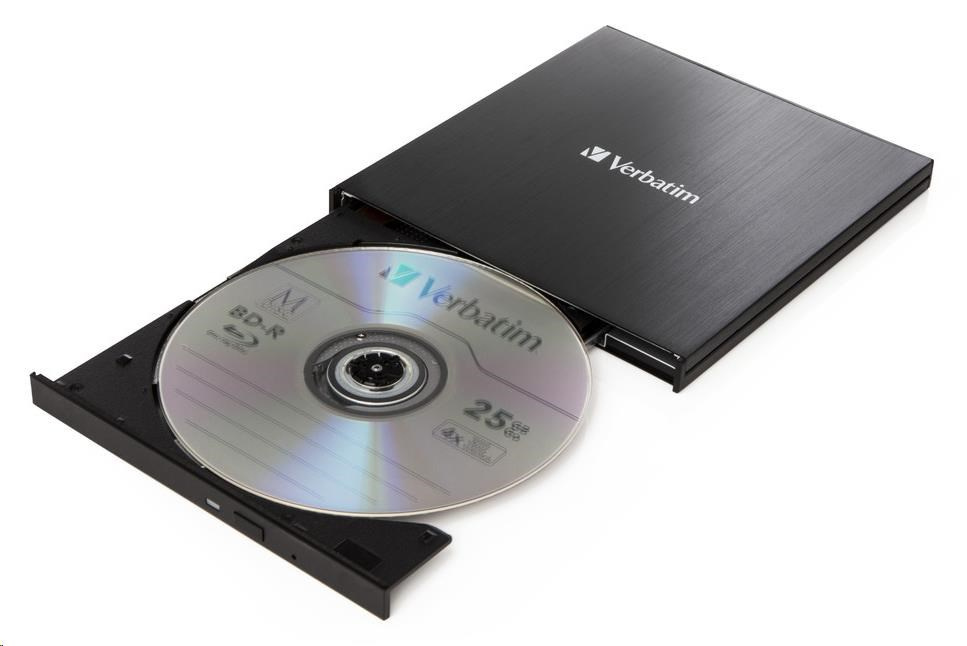 VERBATIM externí mechanika Slimline Blu-ray Writer (USB-C, USB 3.0) Zdarma BR Disc 25GB (CD DVD BD + NERO