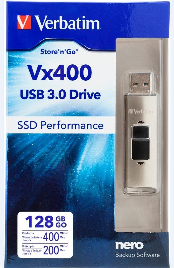 VERBATIM Flash Drive 128GB Store 'n' Go, SSD Vx400, USB 3.0, stříbrná