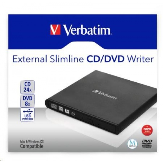 Pokud vlastníte notebook, ultrabook či netbook, je toto malé zařízení přesně to, co potřebujete. Můžete ho používat pro instalaci softwaru nebo k vytváření záloh. Externí CD/DVD Slimline vypalovačka Verbatim je napájena z portu USB, takže nepotřebujete žádný napájecí adaptér. Je jen o něco větší než DVD a snadno se vejde do kapsy, můžete ji tedy vždy nosit s sebou!
