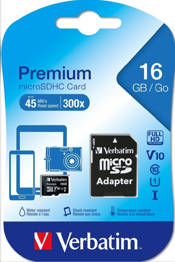 VERBATIM MicroSDHC karta 16GB Premium, U1 + SD adaptér