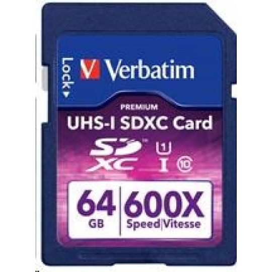 VERBATIM SDXC karta 64GB PREMIUM, UHS-1, Class 10 (R:90/W:25 MB/s)
