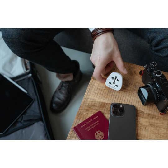 Váš ideální společník na cesty po Evropě – tento cestovní adaptér zástrčky umožňuje připojit zástrčky z celého světa (UK, USA/Japonsko, Austrálie/Čína, Itálie, Švýcarsko, Brazílie a mnoho dalších) do standardních evropských dvoukolíkových zásuvek.
