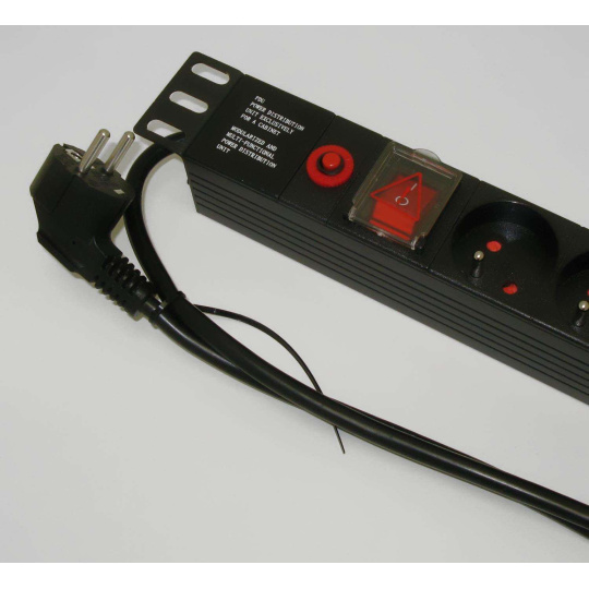 Vertikální rozvodný panel XtendLan 20x230V, ČSN, vypínač, nadproudová ochrana, kabel 1,8m, výška 1U