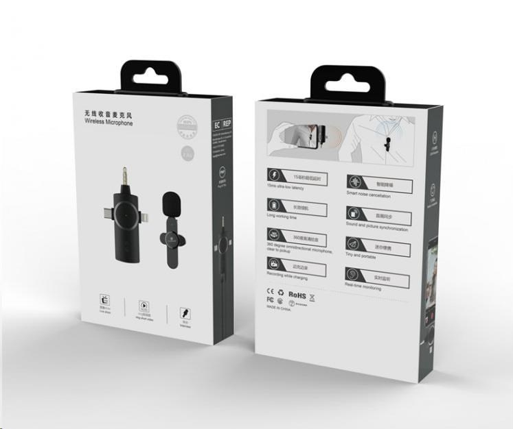 Viking bezdrátový mikrofon s klipem M360, konektor USB-C / Lightning / 3,5 mm jack