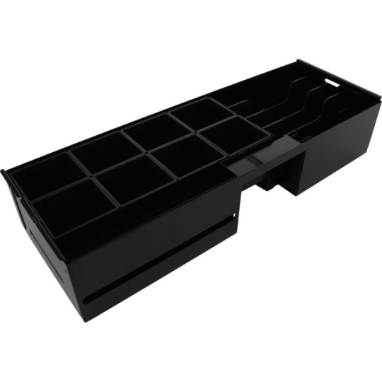 - Vyjímatelný kovový zásobník na bankovky s plastovými oddělovači přihrádek