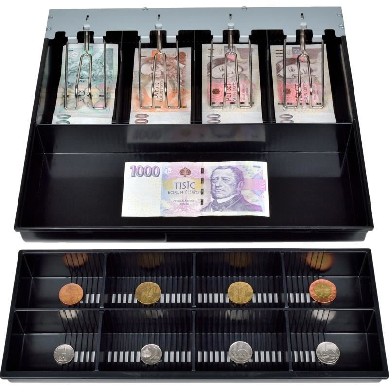 Virtuos pokladní zásuvka C420D - s kabelem, kovové držáky, 9-24V, černá