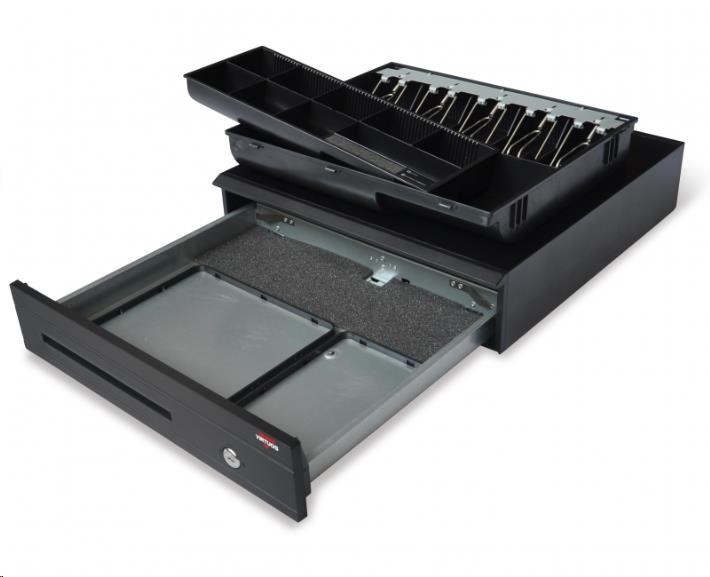 Virtuos pokladní zásuvka C425C, kov. držáky, 5-9V, černá, bez kabelu