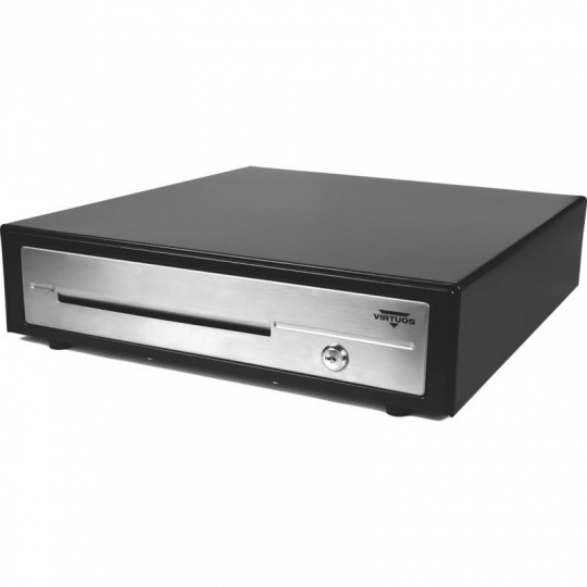 Virtuos pokladní zásuvka C430D - s kabelem, kovové držáky, nerez panel, 9-24V, černá