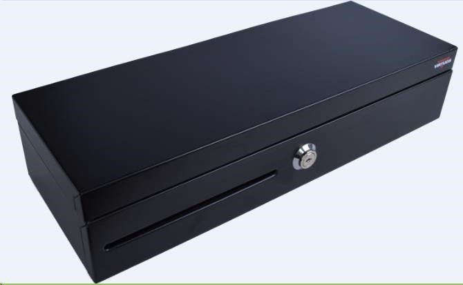 Virtuos pokladní zásuvka FT-460C1; Flip top, bez víka, 9-24V, černá - s kabelem