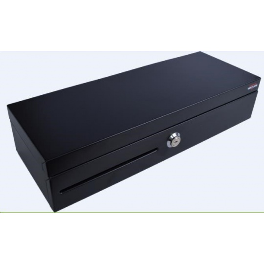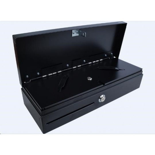 Virtuos pokladní zásuvka FT-460C Flip top, s víkem, 9-24V, černá - s kabelem