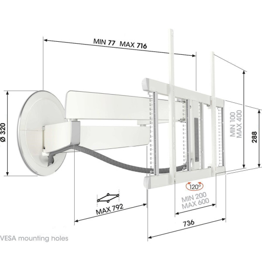 Vogel's Elektrický, TV 40-77", vytažení od stěny 77-715 mm, natočení ±60°, nosnost 35 kg, VESA do 600x400