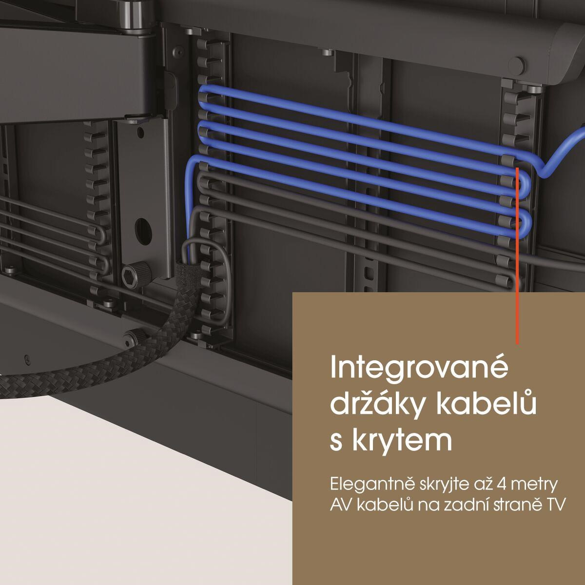 - Plně integrovaný systém vedení kabelů (CIS®) - Připojte, chraňte a skryjte kabely od stěny až po televizor