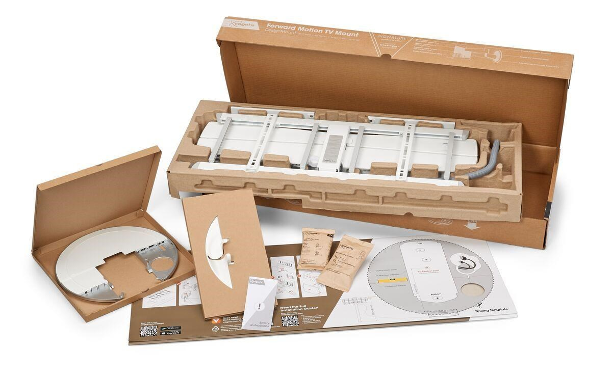 - Snadná instalace s aplikací DrillRight™ AR App - vyznačení všech otvorů pro montáž držáku v požadované poloze TV na stěně