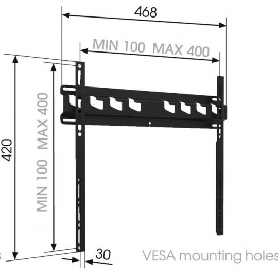 Další vlastnosti:- vzdálenost TV od stěny 30 mm