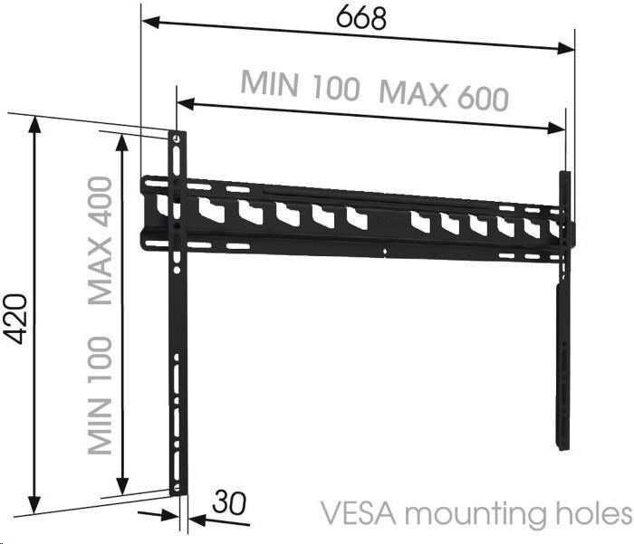 Další vlastnosti:- vzdálenost TV od stěny 30 mm