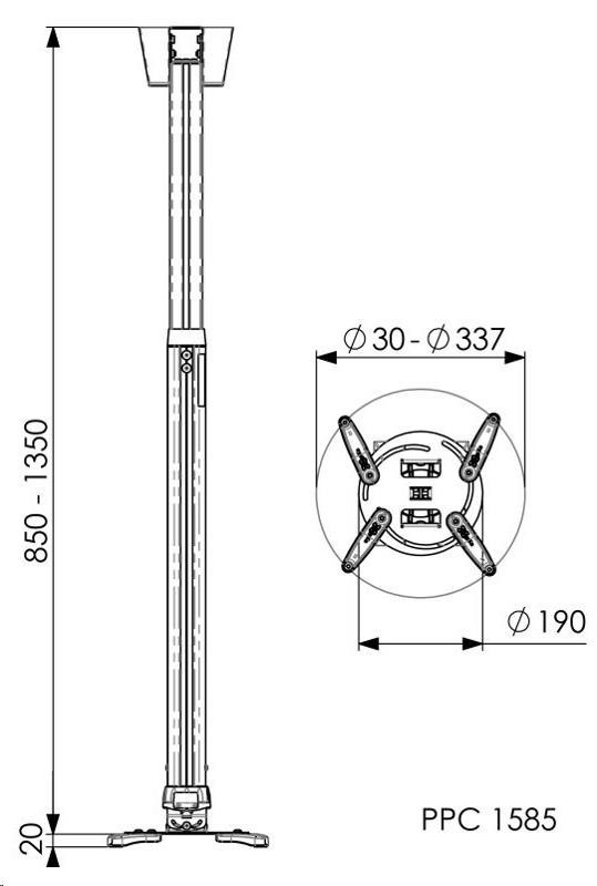 Teleskopický stropní držák na projektor do 20 kg