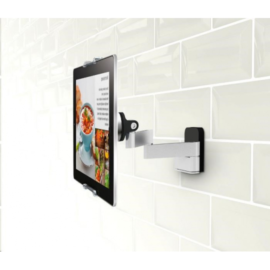 Tablet je velmi užitečným pomocníkem i v kuchyni nejen pro vytváření hudební kulisy, ale i jako pomocná ruka při přípravě vašich kulinářských kreací. Pro jeho maximální užití navrhli ve Vogel's pohyblivý držák poskytující spolehlivé a flexibilní uchycení na stěnu. Nezabírá místo na pracovní desce a drží tablet v bezpečné vzdálenosti od stříkanců.