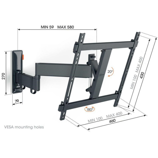- Otočte televizor až o 180° díky 58 cm dlouhým ramenům
