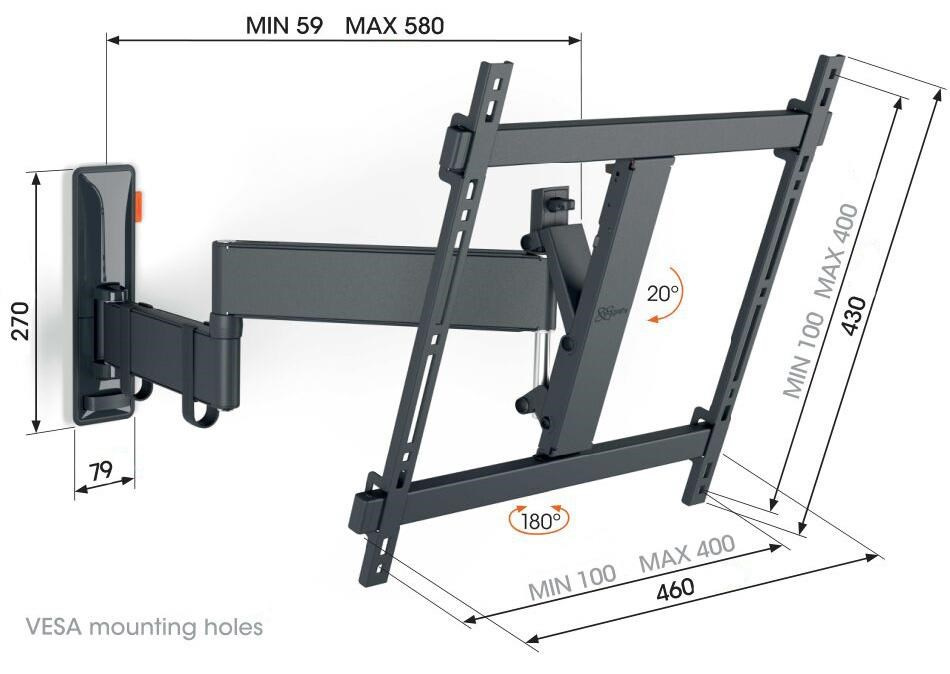 - Otočte televizor až o 180° díky 58 cm dlouhým ramenům