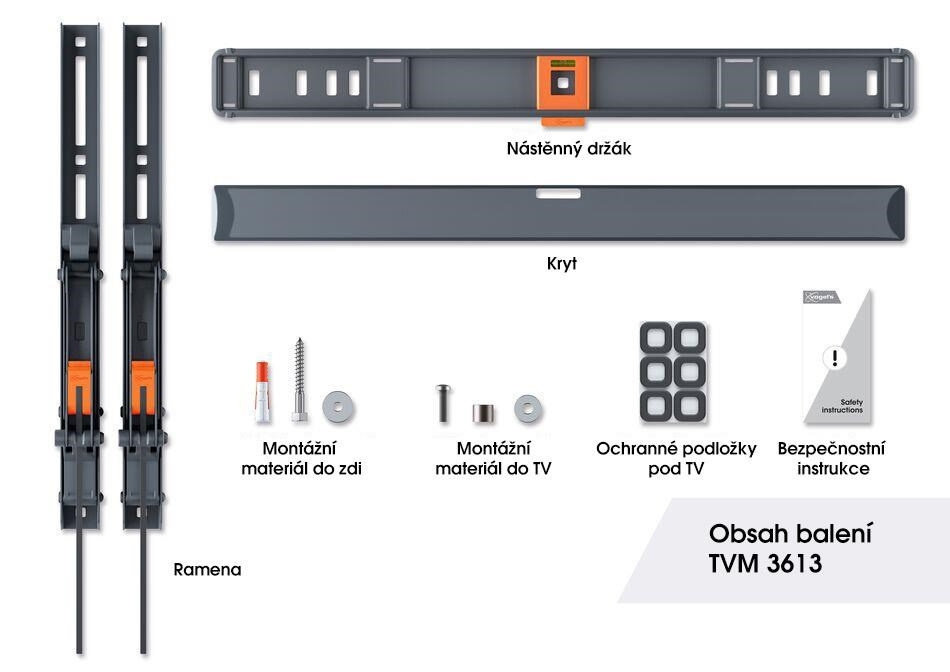 Rádi byste si svůj krásný televizor s plochou obrazovkou užívali bez starostí. Proto hledáte příjemné řešení, které je bezpečné a splňuje všechny vaše požadavky. Držák TVM3613 to zaručuje. Držák je vybaven jedinečným bezpečnostním systémem ClickLoc™. Díky tomuto systému můžete televizor bezpečně uzamknout k nástěnnému držáku pomocí slyšitelného cvaknutí. Kromě toho jsou držáky řady COMFORT testovány na nejméně trojnásobek své maximální nosnosti. Měkké podložky na nástěnném držáku zabraňují poškrábání zadní strany televizoru během montáže.