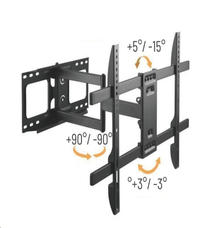 - Volně sklopitelná konstrukce pro jednoduchou změnu náklonu TV v úhlu +5°~-15°