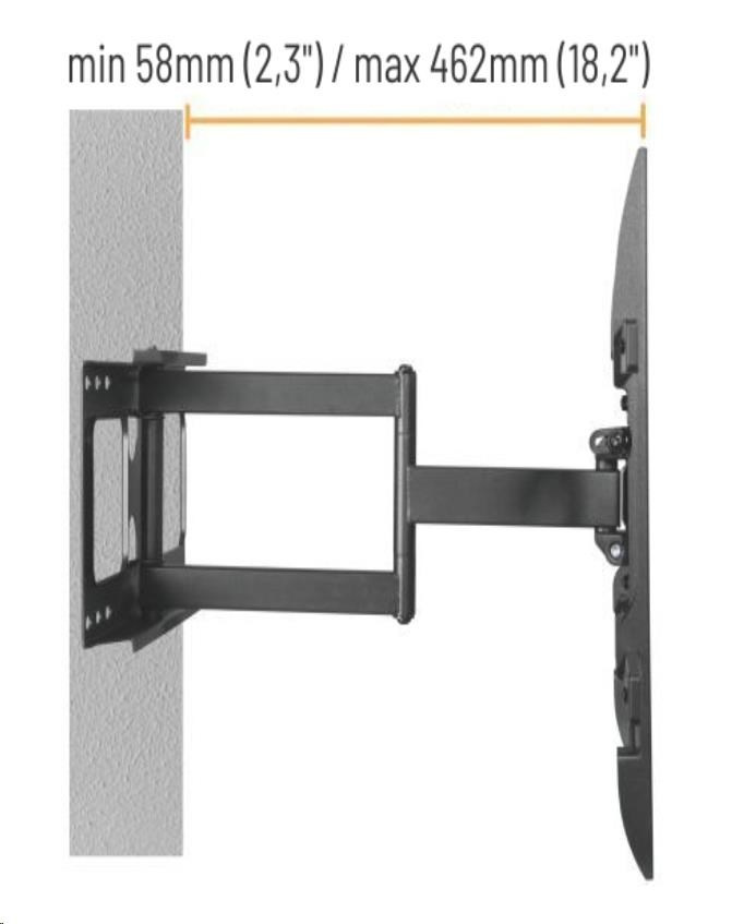 - Nastavitelná vzdálenost od stěny v rozsahu min. 58 mm, max. 462 mm