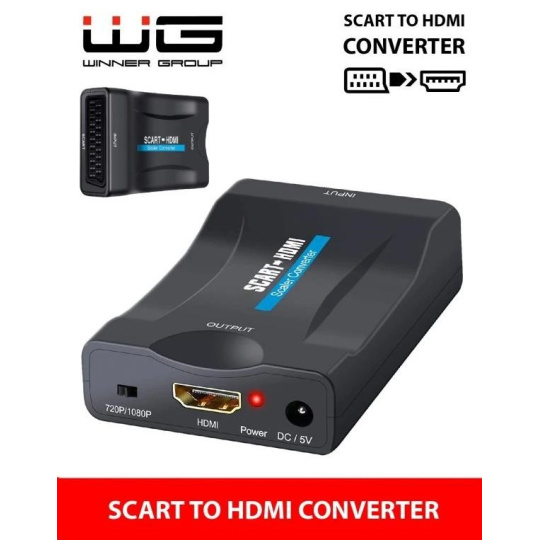 Praktický konvertor Scart to HDMI v černé barvě je určen k jednoduchému propojení přístrojů vybavených výstupem Scart s televizorem (HDMI). Ocení ho zejména milovníci platforem VHS nebo majitelé starších DVD přehrávačů. S určitostí potěší podpora přenosu obrazu v rozlišení HD. Zařízení je přenosné.Napájecí zdroj je součástí balení.