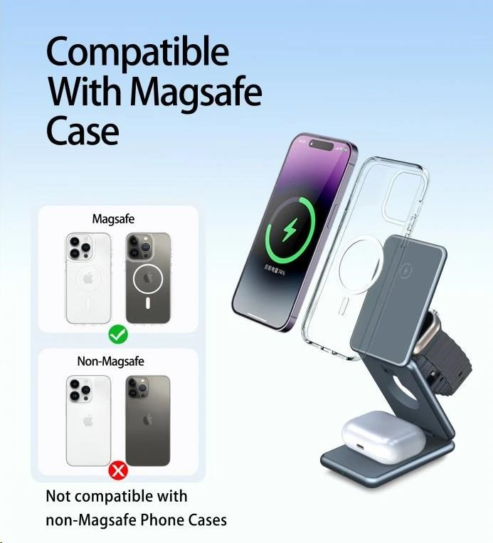 - Univerzální nabíjení 3v1: Nabíjejte současně svůj iPhone, Apple Watch, AirPods či jiné sluchátka s podporou bezdrátového nabíjení.