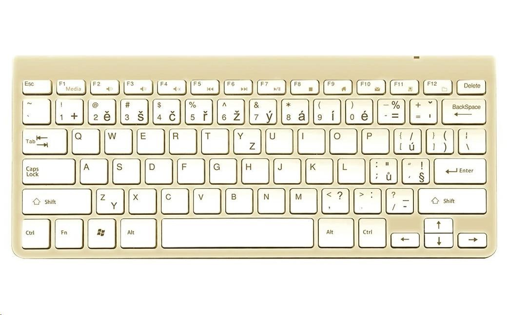 Bezdrátová sada skládající se z klávesnice a myši ve zlaté barvě vám rozhodně usnadní práci. Můžete zapomenout na zamotané kabely. Jak klávesnice, tak myš fungují prostřednictvím Bluetooth, díky čemuž se nemusíte starat o pohodlí.